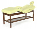 Рама модели из натурального бука выдерживает нагрузку до 200 кг. Гарантия на нее действует целых 3 года. Под ложем располагается широкая полка для разнообразных аксессуаров, полотенец и т.д., изготовленная из того же материала, что и рама. А на одном его краю находится дополнительная секция с вырезом для лица.
